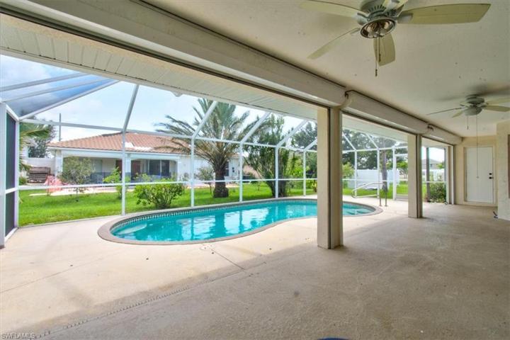 **Motivated Sellers** Freshly landscaped, This centrally located gem has 4 BR, 3 BA with a screened in lanai and pool. It has accordion hurricane shutters around the house with power electric roll down shutters in lanai. Make this beautiful home yours, and seize the opportunity to live in a place where you’re a short distance to the beaches and activities that are too many to name. Close to the growing Pine Island corridor where you’ll find many restaurants and businesses. New businesses opening every day so you don’t have to drive far and it’s all located conveniently nearby. The neighborhood is a testament to the thriving spirit of Cape Coral. The entire inside of the home was recently painted, a new shingled roof installed 4/23, all bedrooms newly carpeted 04/23, lanai has been recently re-screened 08/23.