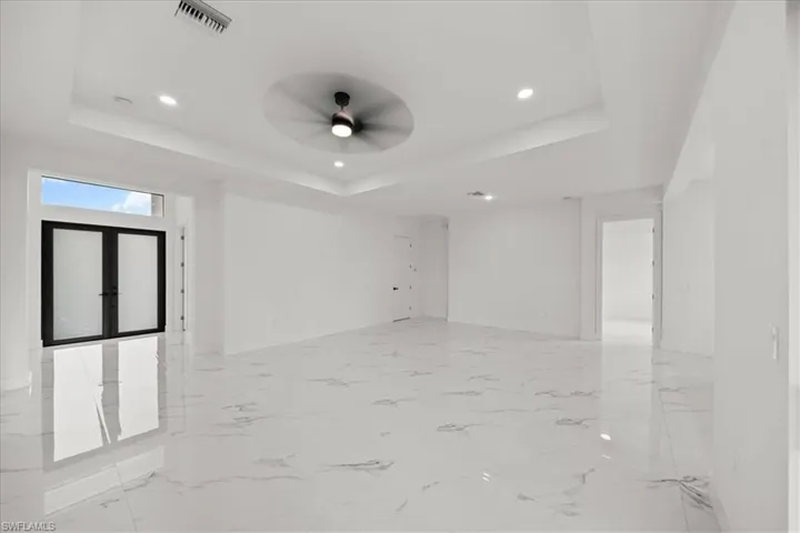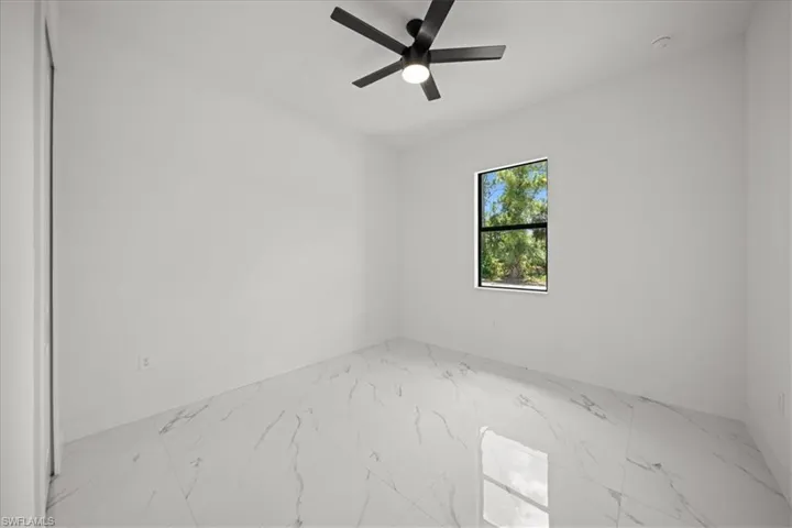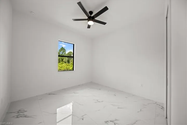 One or more photo(s) has been virtually staged, AI generated or rendered. Beautiful home now available for sale located at 1033 Plymouth St E, Lehigh Acres, FL 33974. This property features 4 spacious bedrooms and 2 full bathrooms. The home includes ceiling fans throughout, a lovely terrace, and a modern master bathroom with a glass-enclosed shower. The second bathroom offers both a glass shower and a bathtub for added convenience.