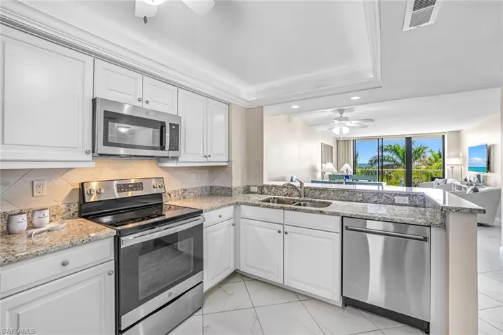 Welcome to an incredible opportunity to own a piece of paradise in Marco Island. This impeccably maintained condo offers 2 bedroom and 2 bathrooms with breathtaking sunset views of the Gulf from your private balcony. Look no further as all of the work has been done inside including newer white cabinetry, new appliances, gorgeous granite countertops and backsplash, indirect lighting and crown above the cabinets & in the tray ceiling, new fan, fantastic newer baths, new carpeting in the bedrooms, all new paint, new air handler and a new water heater. Impact windows and doors provide peace of mind during storm season. This building allows weekly rentals, so it is an excellent opportunity for investors seeking optimum rental income. South Seas offers resort-style heated swimming pool, gated beach access, tennis, pickle ball, boat docks, BBQ grills, exercise room, covered parking and security at the main gate.