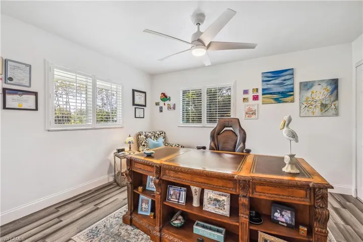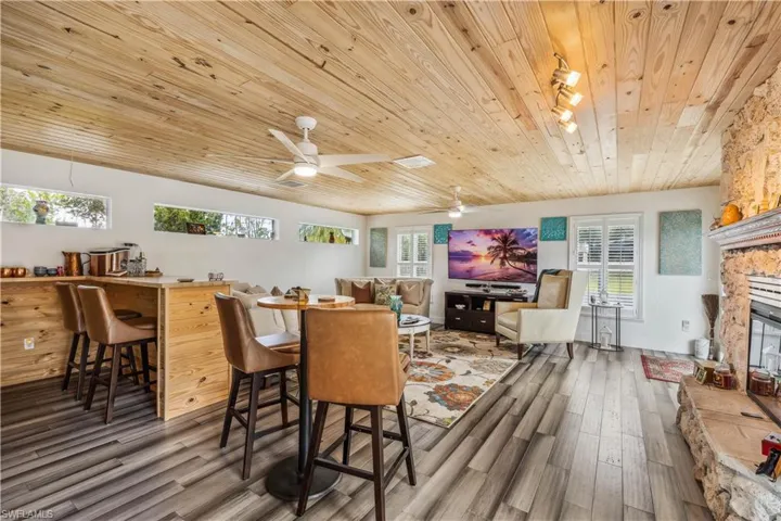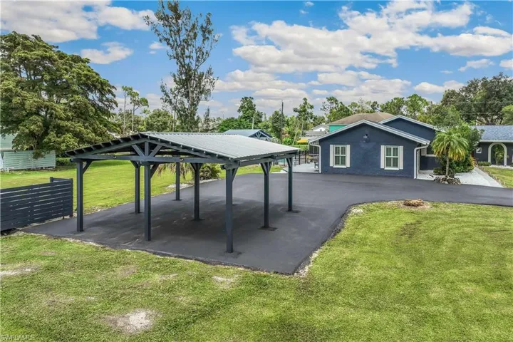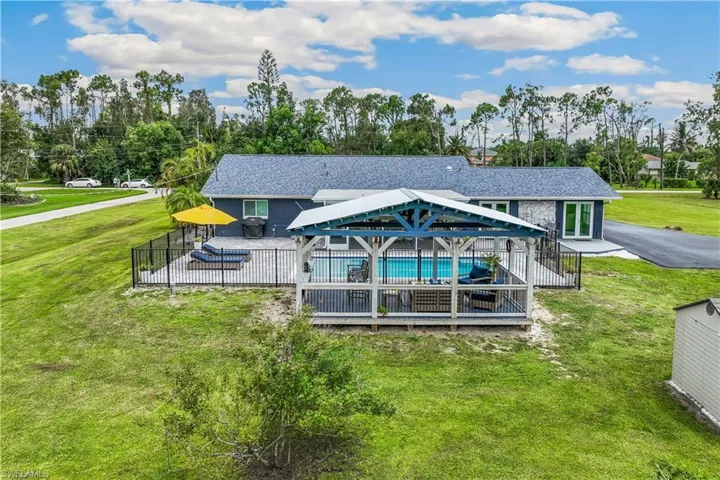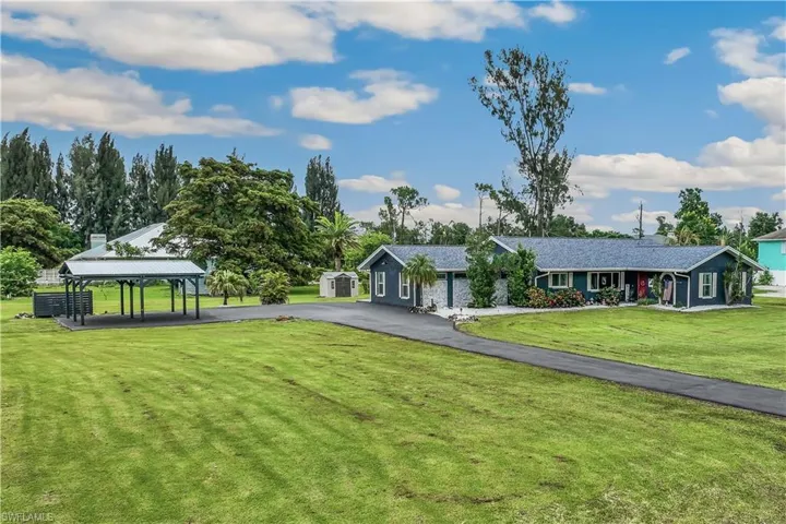 Looking for a Stunning Pool Home on BIG Homesite in the Heart of Ft Myers? Rare Find & Beautifully Remodeled, situated on Oversized Corner Lot with 1.4 ACRES * 2 Primary Suites ~ 3Rd Bedroom is Converted to Huge Custom Closet ~ Home Office/4th Bedroom~ 3 Full Bathrooms * HEATED SALT WATER POOL (2021) with Sun Shelf and Covered Outdoor Seating Poolside * NEW Roof (2021) * NEW AC System (Rheem 5 Ton) JUST INSTALLED 8/1/24 (Both Condenser & Handler) * IMPACT WINDOWS & SLIDING DOORS (2021) * Bamboo Flooring Throughout * Gorgeous Kitchen with Huge Island, Quartz Countertops, Lots of Soft Close Cabinets, Vented Hood Range, Cafe Stainless Steel Appliances & Wall Oven * Large Living Room with Wood Ceiling, Stone Fireplace, Custom Bar with Wine Fridge & Microwave * Soft Close Cabinets & Quartz Countertops in all 3 Bathrooms (2 with Marble Floors & Tile) * Plantation Shutters Throughout * Other Highlights are the Extended Driveway, Carport, Shed, Screened Lanai, Fenced Pool Area, County Only Taxes & Zoned Agricultural (AG2) so Horses, RV’s & Boats are OK! NO HOA Dues! Centrally Located * Flood Insurance Only $581/YR * Come see it today!