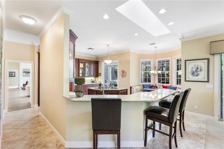 *SEE VIRTUAL TOUR* ONE-OF-A-KIND custom design by exclusive London Bay Homes in Pelican Landing’s prestigious Lakemont neighborhood. This three bedroom plus flexible den is nestled at the end of an intimate cul-de-sac backing to pristine environmentally protected reserve. Greeted with lush landscaping and charming woodwork on approach to extended front porch, main entry opens to reveal sun-kissed gathering room where three French doors invite one’s eyes to perhaps the single largest poolside covered entertaining space we have seen in the community. Running along the entire rear perimeter of the residence, this covered outdoor space showcases numerous skylights and palpable ambiance. This home features tastefully updated kitchen and bathrooms, neutral flooring throughout interior living spaces, and includes newer roll-down hurricane shutters and screening in pool enclosure. Pelican Landing includes a 34-acre private island beach club, gulf access sailing and kayaking, 12 Har-Tru tennis courts, fitness center, bocce, Pickleball, and recreation and educational activities. SKIP THE WAIT LIST: OPTIONAL FULL GOLF MEMBERSHIP TRANSFER AVAILABLE AT CURRENT NESTGOLF.COM RATES AT CLOSING