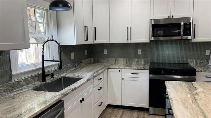 Discover Timeless Charm and Modern Comforts in the Dean Park Historic District This beautifully updated 3-bedroom, 2-bathroom bungalow seamlessly blends historic character with modern comforts, including new electrical, AC, and hurricane double impact window installation. From the moment you step onto the inviting front porch, you’ll feel at home. Relax and enjoy the tranquil atmosphere with composite wood decking and three overhead fans, perfect for morning coffee or evening relaxation. Inside, wood-plank tile floors flow throughout the open living area, featuring a built-in electric fireplace, a dining room, and an eat-in kitchen. The kitchen boasts an island with granite countertops and all-new appliances. Two comfortable bedrooms are located at the front of the home, while the primary bedroom offers a walk-in closet and an en-suite bathroom with a walk-in shower. Beyond the kitchen, you’ll find a second bathroom with a shower/tub combo and a convenient laundry area. Step out back to a private oasis with brick pavers and a concrete pad, ideal for enjoying the Fort Myers lifestyle. The quiet, pet-friendly neighborhood also features sidewalks perfect for leisurely strolls. And when you’re ready to explore, you’re just a short trip away from the exciting dining and entertainment scene of downtown Fort Myers. Enjoy a diverse selection of restaurants, from casual cafes to upscale dining experiences, as well as live music venues, theaters, and art galleries. This charming bungalow offers the best of both worlds – historic charm and modern living – in a truly desirable location