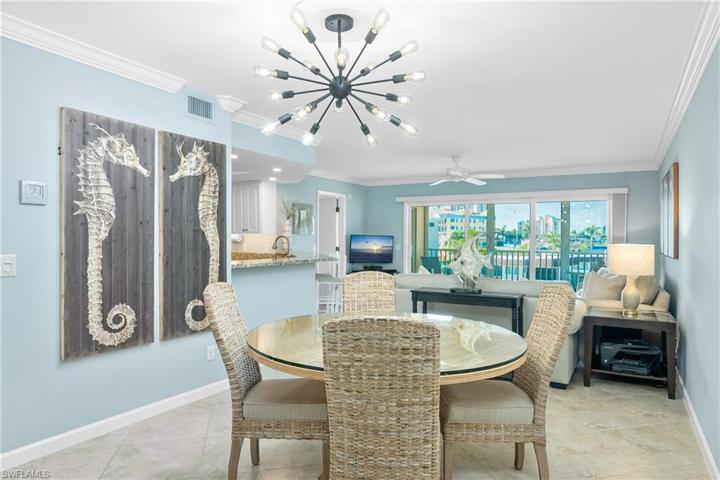 Welcome to the Islander Cove located on the south end of Marco Island. A quiet low density boating community that is water direct and will deliver you to the Gulf of Mexico in minutes from the new seawall and boat slips that accommodate up to a 22′ vessel. Polished decor give this 3 bedroom 2 bath third floor condo a proud presence featuring stone counter tops, ceramic tile that extends out on the private screened lanai, impact sliding glass doors, auto shutters, laundry, window treatments, split floor plan, breakfast bar, open dining/living that over look the long water canal view and Marco Islands famous skyline with its spectacular sunsets all in walking distance to the beach, shopping, dining, on a street that inspires walking, jogging and cycling surrounded by water views. Located on the third floor, with a large outdoor patio where you can view the fantastic sun and moon rise all with a view of Caxambas Pass. This unit is offered fully furnished with deeded boat slip #18 and deeded oversized one car garage #5 that is conveniently located at the bottom of the stairs right outside this unit. Priced to sell, offering extra storage, this condo has it all.