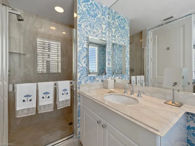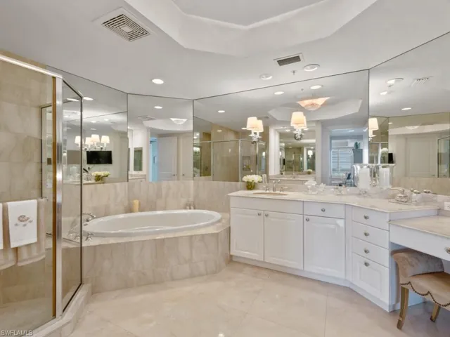 Exceptional ’01 Belize end residence located within prestigious Cape Marco exudes timeless elegance. With additional architectural details and modifications made pre-construction, this luxury 3 bedroom, 3 and a half bath residence is like no other. From the private elevator foyer, you enter the gorgeous dining room and living room which features additional recessed lighting, custom built-ins, electric solar shades, and breathtaking views of the Gulf and Ten Thousand Islands. The main living space boasts luxurious marble flooring throughout. The well-equipped kitchen is sure to delight any chef and is complete with gas cooktop, white cabinetry, and granite counters. Enjoy the additional windows in the kitchen and family room provided by this desirable end residence. The master suite is a private oasis with dramatic views, access to the front terrace, and opulent ensuite bath with white cabinetry, dual vanities, walk-in shower, and jetted tub. The additional two bedrooms – each with ensuite bath, beach views, and access to the rear terrace – provide ample room for friends and family. The large front terrace is the perfect place to relax and enjoy the gentle island breeze, fresh salt air, and spectacular views of the sparkling blue waters of the Gulf and Ten Thousand Islands. Discriminating buyers will appreciate the luxurious finishes and thoughtful details throughout including plantation shutters, custom built-ins, custom closets, and much more. The large 15’x8′ storage locker with shelving provides plenty of additional storage space. Enjoy all of the upscale amenities available at private, gated Cape Marco including 6 HarTru tennis courts and private beach access in addition to the many fine amenities Belize offers – fitness center, theater, guest suites, Gulf-side pool, and more.