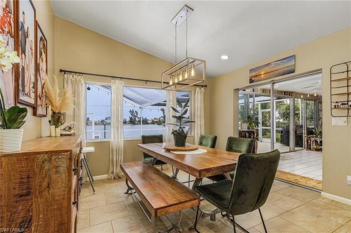 Check out this unique Spanish style pool home with expansive views of Memory Lake located in a desirable SW Cape Coral neighborhood. This home has 3 bedrooms / 2 bathrooms with an open and airy floorplan, vaulted ceilings and tile throughout. Large spacious bedrooms and updated bathrooms. New black stainless steel appliances, gorgeous teak wood countertops, open shelving, pass through window & reverse osmosis in the kitchen. Brand new pantry wall. Large picture window with amazing views of sunrises and sunsets overlooking the pool and lake from the dining room. Walk out of the sliding glass doors to a large covered lanai that could be kept open to the pool or drop AC to make more indoor living space. Fenced in yard. Brand new hot water heater. Has great rental possibilities or enjoy retirement with Floridas finest views. Other upgrades within the last 5 years include; new roof, new AC, new whole house re-plumbing, new electrical panel, interior & exterior paint, & all assessments paid! All of the major items are done, just waiting for the next owners!