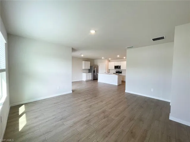 Brand-new 2026 construction in Cape Coral! This modern 4-bedroom, 2-bathroom, 2-car garage home offers a bright, open-concept layout designed for comfortable Florida living. Conveniently connected to city water and sewer. The spacious floor plan features a stylish kitchen with quartz countertops, sleek modern white cabinetry, and stainless steel appliances. The large master bedroom includes an elegant master bath with dual sinks, quartz countertops, and spacious walk-in closets. Enjoy a spacious backyard with covered lanai, perfect for relaxing or entertaining. Additional highlights include the “Home is Connected” smart home package and beautiful pavers on both the driveway and lanai. Conveniently equipped with washer and dryer. Located in a quiet, desirable neighborhood close to shopping and dining, this new construction home combines modern design with everyday comfort—make it yours today!