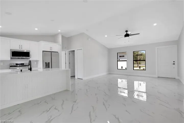 One or more photo(s) has been virtually staged, AI generated or rendered. This new construction home in Golden Gate Estates offers modern design, high-quality construction, and a rare 100% uplands lot, providing added confidence in the land and long-term value. Located in one of Naples’ fastest-growing areas, the property is close to expanding commercial development along Randall, Immokalee, and Oil Well Roads, offering convenient access to shopping, dining, and everyday amenities while maintaining a residential setting. Built as a quality new construction home, the property features upgrades that set it apart from typical builds in the area, including a metal roof, full concrete driveway, and a whole-home reverse osmosis water system for improved water quality. These durable, long-term features add both functionality and value in a new construction setting. Inside, the home showcases a modern open-concept design with quartz countertops, quality cabinetry, and a functional layout that supports both everyday living and entertaining. The bathrooms include custom tile work and upgraded finishes (dual sinks in both bathrooms!), contributing to a consistent modern design throughout the home. The overall build emphasizes clean lines, thoughtful detail, and a move-in-ready presentation typical of well-executed new construction homes in Golden Gate Estates.