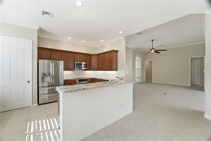 This meticulously cared-for four-bedroom, three-bath residence is located in the sought-after gated enclave of Briarwood. The open floor plan features an upgraded kitchen with granite surfaces, an induction cooktop, stainless-steel appliances and custom cabinetry. Plantation shutters are found throughout, and the owner has already begun upgrading the home with impact sliders and doors for added peace of mind. A spacious screened lanai showcases the solar- and electric-heated pool and spa with an extended paver deck, ideal for entertaining or enjoying Naples’ outdoor lifestyle. A small side-patio lake view subtly enhances the outdoor ambiance. With professional landscaping, lighting and an irrigation well, the property blends curb appeal with practical comfort. Residents enjoy 24-hour guard-gated security, low association fees, and access to tennis, pickleball, a clubhouse and resort-style pools—just minutes from downtown Naples and Gulf beaches.