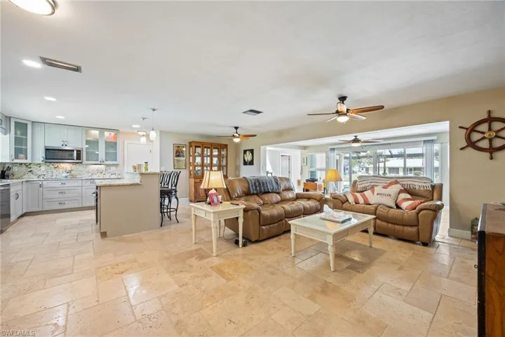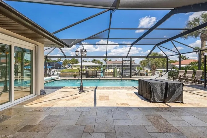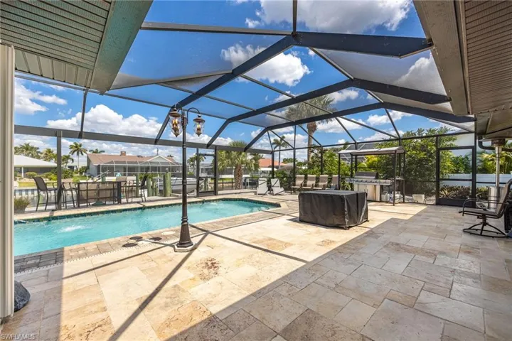 Discover your waterfront escape in this remodeled 4-bedroom, 3.5-bath pool home, providing direct Gulf access and a 26′ Larson bowrider, docked side on a 10,000# lift. Located just minutes from the river, this home offers both luxury and practicality.The gourmet kitchen, featuring 42″ gray shaker cabinets, high-end stainless steel appliances, and level 5 granite countertops, perfect for entertaining and sharing your culinary talents. The open-concept design seamlessly connects the kitchen to the dining and great rooms, showcasing stunning water views. Updated windows and beautifully renovated bathrooms enhance the home’s appeal. With two master suites and two guest bedrooms, this property offers flexible living arrangements, ideal for multi-generational families or maybe an Airbnb. Enjoy the oversized, solar and electric heated pool, surrounded by a spacious paver deck with picture window screening. Picture you entertaining dinner guests at sunset – simply decide how many you would like to invite. Flood Zone X designation means no mandatory flood insurance, translating to significant savings. Additional features include pre-wiring for a hot tub, timed dock lights, and wired RV parking. The included 2007 Larson bowrider, with a rebuilt inboard motor and only 350 miles, is in pristine condition, ready for your boating adventures. This home offers exceptional value and an unparalleled waterfront lifestyle. SOLD FURNISHED or NEARLY TURNKEY!