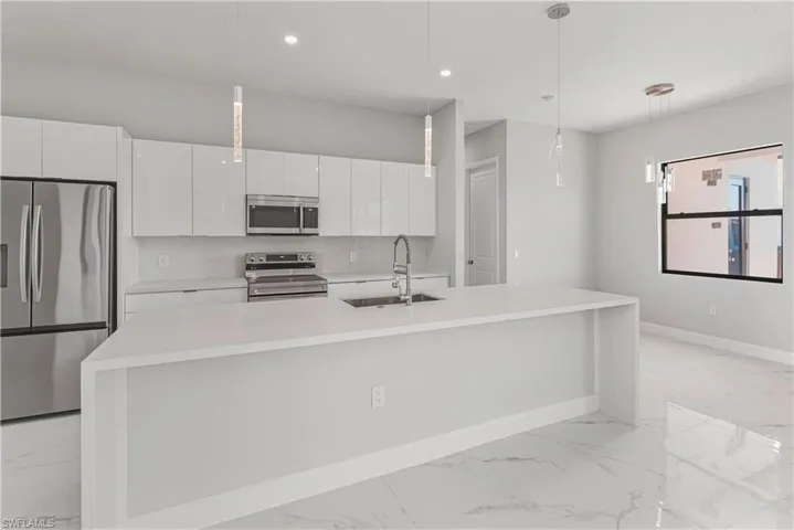 This beautiful new construction custom home. The house offers the perfect mix of space, style, and comfort. The home is offering 3 private bedrooms, 2.5 bathrooms, and a 2-car garage. The half bathroom has an access door to the lanai (ready for a future pool) . You will love the raised ceilings and the open and inviting living areas (kitchen/dining/living). The captivating kitchen features stunning contemporary lighting that extends into the dining area, stainless steel appliances, and an island with a convenient breakfast bar. The spacious master suite offers the perfect retreat after a long day, with lots of natural lighting and a spa-like bathroom where you can unwind and rejuvenate. In-home laundry room with hookups. Step outside through the patio doors and discover your own private paradise. Plenty of space and potential for a pool. Call today to schedule your showing appointment