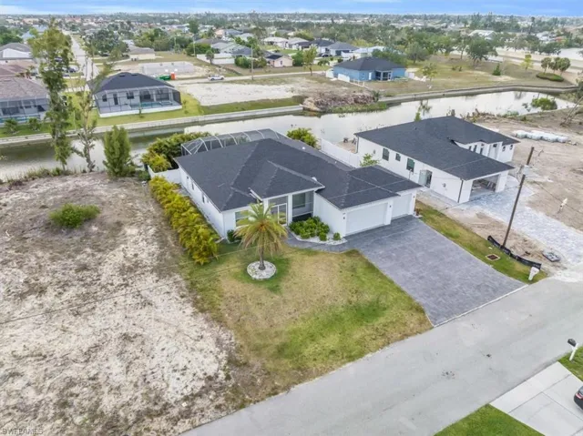 NOT IN A FLOOD ZONE! ALL ASSESSMENTS PAID!! Spectacular home built by Avantgarde: The Building Group powered by Manatee Construction. The smartest floor plan and design I’ve seen in Cape Coral! Lounge by the pool while the kiddos, fish in the canal or kayak around basking in the sun which is sure to put a smile on everyones faces. Plenty of space for everything as this home features four bedrooms, three bathrooms a den and the 4th bedroom is an in-law suite with its own entrance. The possibilities are endless with this feature. Since Cape Coral has strict rules on what can be in your driveway the builder made the third car garage a complete pull-thru allowing extra space to park a trailer, a boat, jet-ski’s, a work vehicle, absolutely anything you’d like without getting into trouble. Genius! 10′ beam home with 8′ doors throughout making this home look and feel incredibly open and spacious. Pavers in driveway, pull thru, around pool and more. Fully fenced in back yard, mature landscaping for privacy. Epoxy flooring in garage. Brand NEW A/C March 2024 with warranty