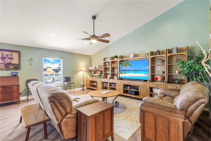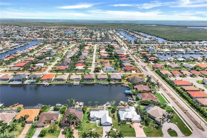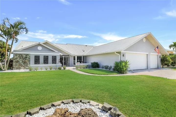 Stunning Gulf access awaits at this outstanding pool home nestled along a wide canal in this sought-after SW Cape Coral neighborhood! Embrace the tranquility of the expansive lot (.4 acres) with over 120’ of prime Gulf access frontage with southern exposure. Just a short boat trip to open waters and close to Cape Harbour, restaurants, and shopping. Lush landscaping graces the yard with mature palm trees and a welcoming patio at the home’s entrance. Step inside to discover a recently renovated kitchen, adorned with rich wooden cabinetry featuring ample drawers and storage, sleek granite countertops, and a suite of stainless-steel appliances including a double oven, cooktop, wine cooler, and not one, but two pot fillers! A generous pantry and cozy eat-in dining area complement the kitchen’s allure, while it effortlessly flows into the spacious living room accentuated by soaring vaulted ceilings, ideal for hosting gatherings. Entertain with ease in the formal dining area, with a built-in cabinet buffet, or unwind in the family room offering picturesque views of the pool and canal. Multiple sliding glass doors seamlessly blend indoor and outdoor living, leading to the screened lanai from the kitchen, living, family, and primary bedroom, offering fantastic views. Two guest rooms share an updated guest/pool bath with coastal accents, while the primary bedroom has a wooden feature wall, an ensuite bath with a sliding glass door leading to an atrium-like space, and a generous walk-in closet. Plenty of outdoor space awaits with a newly installed composite dock featuring a captains walk, kayak lift, and a 10k lb lift and a spacious under-truss lanai with a brand-new pool cage. The home also features a 3-car garage, huge attic storage space, and a laundry room equipped with ample cabinets and butcher block counter tops. Furniture negotiable, excluding a few select items. Seller has a transferable flood policy. Don’t miss the chance to make this Gulf access sanctuary your own! Call today to schedule your private showing.