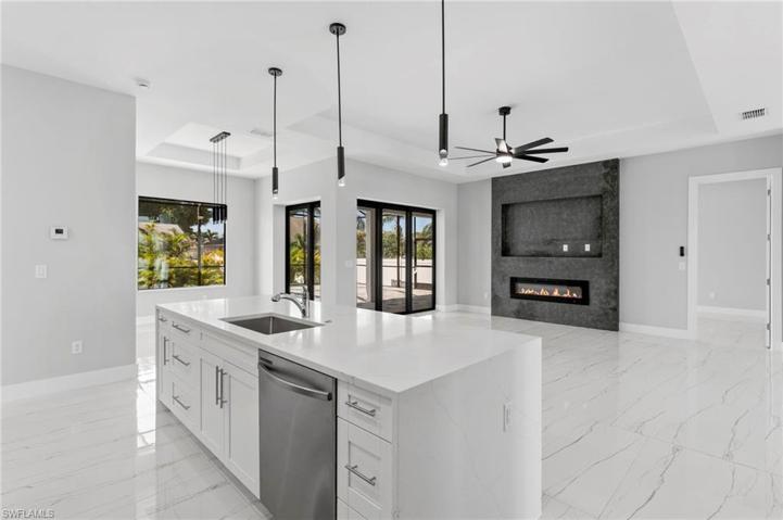 Welcome to this STUNNING move-in-ready new construction home in desirable SW Cape Coral. NO HOA makes this a perfect vacation home, investment property, or full-time residence! Featuring 3 beds, 3 baths, and a 3-car garage, it’s a blend of comfort and style. From the grand circular driveway, walk through the elegant double doors into a home that offers both elegance and comfort. Greeting you is a beautiful custom fireplace, high tray ceilings, and sliders perfect for indoor/outdoor living. Tile flooring flows seamlessly throughout. The primary suite boasts 2 walk-in closets, and a luxurious bathroom with a tub, walk-through shower, and double sinks. The split floorplan situates 2 bedrooms on one side, one with an en-suite, and a 3rd full bath with pool access. The kitchen features quartz countertops, stainless appliances, and a gorgeous, oversized waterfall island. Sliders from the living room and primary suite open to the saltwater pool and large covered lanai with an outdoor kitchen for easy entertaining and relaxing. The three-car garage gives plenty of room for parking and storage. A tile roof completes the package for this amazing home. Book your showing today!