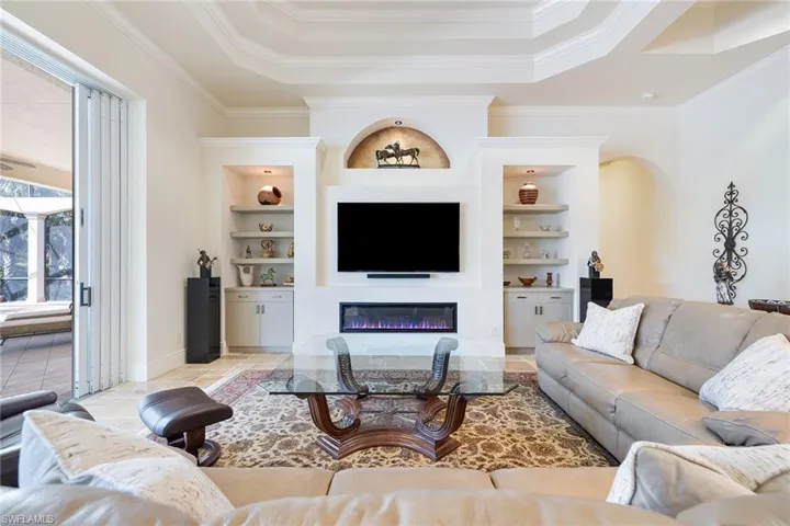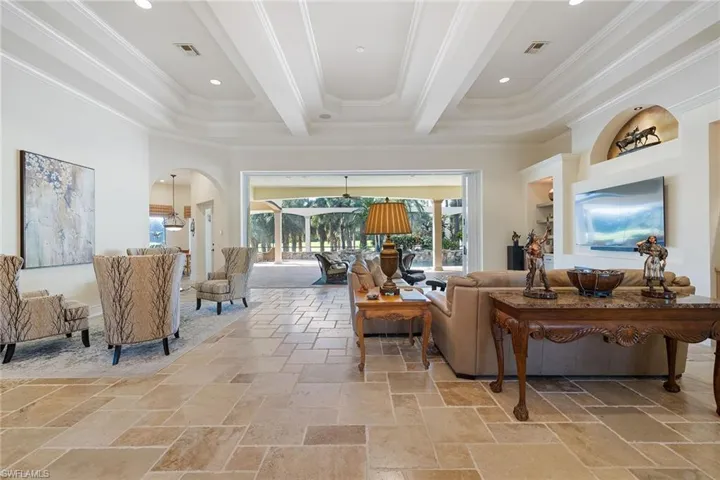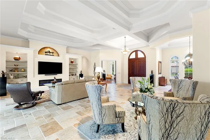 Immediate Golf Membership Available! Situated on the 10th fairway of Mediterra’s North course, imagine waking up every morning to sweeping views of the water and golf course. This spacious home boasts an open design with pocketing sliders, creating a seamless connection to the expansive outdoor living spaces. Outside is where you will be whether grilling out at the outdoor kitchen, taking a dip in the rock-adorned pool or spa, or enjoying the unparalleled sunsets at the built-in fire pit. One of the standout features of this home is its flexible layout. Along with the 3 bedrooms, there’s also a spacious family room that is perfect for a sports gathering or can easily be converted into an oversized guest suite if you are in need of a fourth bedroom (virtual photos shown). Details include a coffered ceiling, stone floors throughout, an electric fireplace and more. Enjoy peace of mind with this home’s 2020 roof, impact windows and doors, a whole house generator as well as an air-conditioned garage. Located in the award-winning community of Mediterra featuring two Tom Fazio championship golf courses, pickleball, tennis, state-of-the-art fitness and a private beach club. Enjoy your toes in the sand and golden sunsets at Mediterra’s fully renovated private Beach Club, situated along the Gulf! Imagine arriving to have your car valet parked and and lounge chairs and umbrellas waiting for your arrival or set up upon your request. With 10,000 square feet of space, the upper level offers indoor and al fresco dining, a full bar, swimming pool along with lockers and dressing areas for changing. Spend the day and enjoy dinner while watching the sun set in the distance.