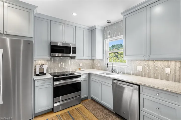 Experience the charm of living in the heart of Olde Naples, just a short three blocks from the pristine white sand beaches and the Gulf. This remarkable condo, situated on the second floor, features two bedrooms and one bathroom, making it an inviting retreat. The interior boasts abundant natural light, creating a bright and airy atmosphere throughout the home. It seamlessly blends modern and elegant design, enhanced by tasteful decor and exquisite finishes. The kitchen is equipped with custom wood cabinetry, stone countertops, and stainless steel appliances. Both bedrooms offer ample closet space and natural light, while the condo is conveniently located just steps away from the communal laundry facilities. Chatelaine is a charming building comprising only ten units and residents can also enjoy a community BBQ grill. The property is in close proximity to the shops on 5th Avenue South and 3rd Street South, as well as fine dining establishments.