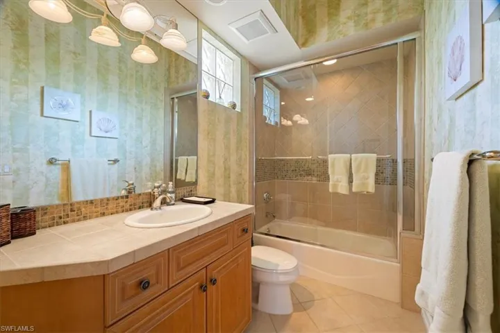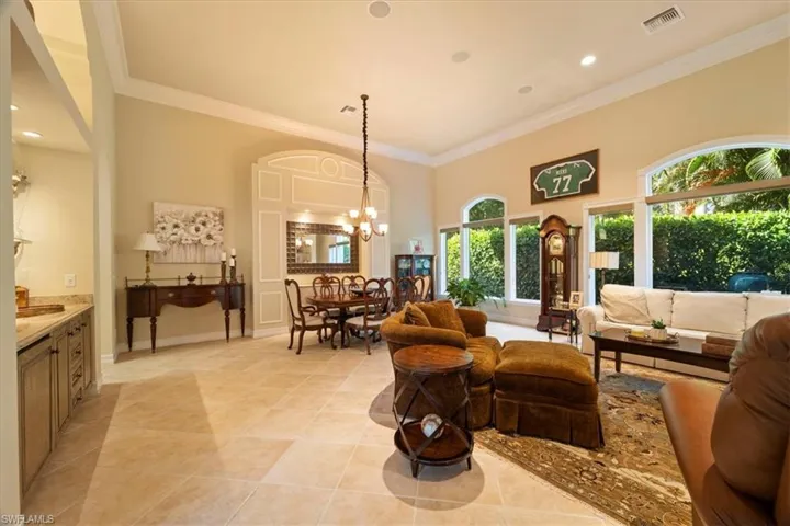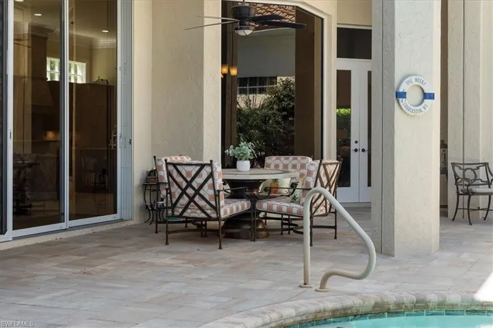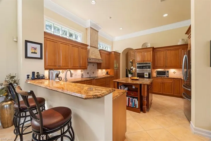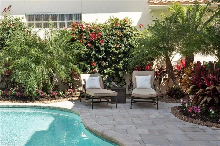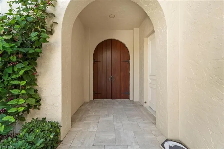 Nestled in the sought-after neighborhood of Terrabella within Pelican Marsh, this exquisite home seamlessly combines sophistication and comfort. Upon arrival, guests are greeted by rustic, arched double doors that lead to a private oasis. Inside, the interior boasts custom built-ins, soaring ceilings and triple-crown moldings. The main house has a master suite downstairs as well as a great office over looking the pool. In addition, a back staircase leads to a loft area upstairs with 2 en suite bedrooms. Additionally, there is a separate guest cabana with a full bath and morning bar provides a secluded retreat for visitors. The home is updated with new roof, impact windows and hurricane screens on the lanai as well as modern conveniences such as a sound system, security camera, lighting, and an expanded brick paver driveway. Stepping outside, the expansive outdoor lanai area beckons with lush landscaping, a pool, and spa, creating a tranquil oasis for relaxation and alfresco dining. This residence effortlessly caters to contemporary living needs, offering a perfect harmony of serenity and accessibility. Conveniently located just a short 25-minute drive from the airport and in close proximity to the beach, shopping, and exceptional dining experiences.
