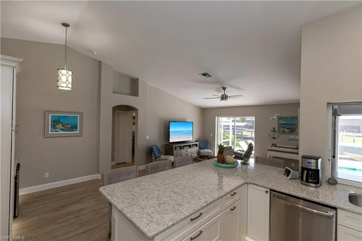 Wowza!! Best priced house in the Cape with tons of Upgrades! Don’t miss buying your dream home in Cape Coral with a Gulf Access Canal/Boat Dock! This stunning updated single-family home boasts 3 bedrooms, 2 bathrooms, 2-car garage, and is perfectly located in a quiet neighborhood. Step inside and be greeted by the sleek stainless steel appliances, beautiful porcelain tile flooring throughout, and luxurious quartz countertops with 42″ white Thomasville cabinetry in the kitchen. The in-ground pool is perfect for cooling off and with Gulf access and a boat dock, you can easily explore the waterways of Southwest Florida. Southern rear exposure and huge lanai! 4 sets of sliders for perfect views throughout the home. Tropical inspired landscaping! THE WHOLE HOUSE SOLAR PANELS ARE PAID IN FULL AND OFFER A SAVINGS OF $4-$5K PER YEAR! The screened in saltwater pool was just added in 2023, along with a new roof in 2019 and a new HVAC system in 2020. With all hurricane impact windows, you can rest easy knowing your home is protected during storm season. This home has been fully remodeled to perfection, leaving you with nothing to do but move in and enjoy all that this beautiful property has to offer. Don’t miss out on the opportunity to make this your forever home! View this SW Florida home in paradise today! NO HOA FEES! ASSESSMENTS PAID! CITY SEWER & WATER! QUICK DRIVE TO BEACHES! NEVER FLOODED!!!