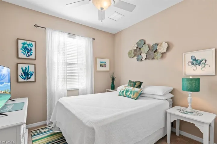 This like- new pool home is located in a gated community in Bonita Springs and offers beauty and peacefulness year-round. Amenities abound with a 48-ace lake with fishing pier, private pool, tennis, bocce court, playground, pickleball, grill, and community gardens. When you walk into the front door, you are greeted with an open and flowing floorplan, complete with 4 Bedrooms and 3 Full Bathrooms – two of the Bedrooms are considered to be Master Suites. This smart-enabled home has so many upgrades, including brand new impact sliders, double custom closets in Master, granite countertops throughout, stainless steel kitchen appliances, new light fixtures, crown molding, fresh paint and lush landscaping to name a few! And just when you thought you’ve seen it all, you walk into the lanai with spa, pool, and outside built in kitchen – the cherry on top …the incredible custom motorized roll down privacy shades on all sides of your enclosure adding even more privacy for your leisure. Bonita Landings is a quaint community, with easy access to I-75, shopping, dining and the pristine Gulf beaches of Florida. Guest will have access to the entire home. This is offered short or long term, this pricing is for long term. Long term lease may available May 2026.