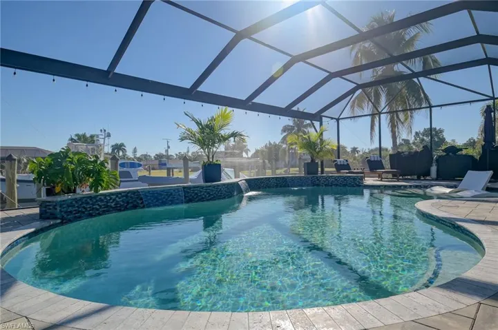 Introducing your ideal direct Gulf Access waterfront sanctuary in Southwest Florida! This stunning 2,366 square foot residence, featuring 3 bedrooms, 2.5 bathrooms, and a 3-car garage, embodies the essence of coastal living in Southwest Florida. Enjoy seamless access to the Gulf via the Caloosahatchee River, courtesy of your private dock crafted with Trex Composite material, complete with an electric lift capable of handling boats up to 14,000 lbs. Dive into luxury with a breathtaking saltwater pool featuring water features, a sun deck, and a panoramic screen enclosure, making it a rare find. The home’s interior is adorned with premium upgrades including quartz countertops in the kitchen, renovated bathrooms, plush new carpeting in the bedrooms, and a brand-new A/C unit installed in 2022. Additionally, the residence is equipped with a whole-home Generac generator connected to a 250-gallon underground propane tank for added peace of mind. Experience comfort and convenience with the thoughtfully designed split floor plan, highlighted by a master bedroom featuring French doors leading to the outdoor living area, dual closets with built-in organizers, dual vanities, a luxurious soaking tub, and an expansive walk-through shower. Connected to city water and sewer, and free from HOA fees and restrictions, this property offers the ultimate waterfront oasis tailored to your desires. With no bridges or locks to navigate to reach the Gulf of Mexico, this is truly a dream come true for waterfront living. Plus, it’s a short boat ride to the waterfront Boat House Tiki Bar & Grill! Come enjoy the SWFL waterfront lifestyle to the fullest here!