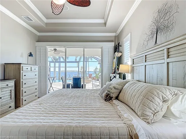 Live on the River with little fear of flooding. This home stayed dry inside during IAN!! Experience the SW Florida lifestyle in this river front residence. The minute you walk through the front entrance of this lovely home sitting on a high elevation you are greeted with a panoramic back drop of the Caloosahatchee River. The open-floor plan arrangement offers just shy of 2500 sq. ft. including a spacious kitchen/ great room. Formal and Kitchenette dining, 3 Bedrooms + Den, 3 Baths. Master suite, guest en- suite, guest bedroom with pool bath. Built in 2009 this home is nicely appointed: granite counters, wood cabinetry, tile and wood floors, volume ceilings, crown molding, tall baseboards, & plantation shutters throughout in every room. Outdoor kitchen with built in beer tapper, picture screen window and more. The lanai is spacious & accessed from four areas within the residence and is complete with an infinity edge pool, spa, and an ample blend of under truss and sun space. Just beyond… your own private composite dock with canopy and Boat lift, newer seawall, all surrounded by tall Royal Palms. This home is secured with impact windows and electric wind rated Kevlar screen.