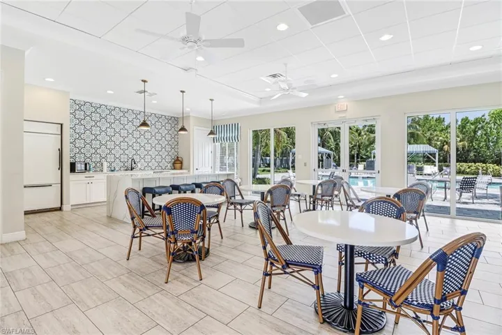 This beautifully appointed attached villa shows like new and has been impeccably maintained. From the moment you step inside, you’ll notice the quality finishes and thoughtful upgrades throughout, including impact glass throughout, crown molding in every room, 5¼-inch baseboards, tray ceilings, recessed and ambient lighting, upgraded fans, plantation shutters, and a blend of tile and luxury vinyl flooring. The stunning kitchen is a true centerpiece, featuring a gas cooktop, quartz countertops, stainless steel appliances, abundant cabinetry, a pantry, and a large island accented with shiplap detail and stylish pendant lighting. The adjacent dining area offers plenty of space for entertaining family and friends. Unwind in the inviting great room or step out to the screened lanai with desirable southern exposure, where you can enjoy tranquil lake views. The lanai is also equipped with a gas connection, perfect for outdoor grilling. The spacious primary suite offers two closets and a beautifully designed en-suite bath with dual vanities, a walk-in shower, and a private water closet. The guest bedroom is currently used as a home office but easily accommodates visiting guests, while the den with French doors provides additional flexible space for an office or extra sleeping area. NO FLOOD INSURANCE REQUIRED! Residents enjoy access to resort-style amenities, including a pool and spa, a clubhouse with a full kitchen and dining area, a community firepit, and a dog park. This pet-friendly community allows up to four pets (including up to three dogs with no weight limit). Ideally located just minutes from the white-sand Gulf beaches and downtown Old Naples, you’ll enjoy easy access to the renowned dining and shopping of 5th Avenue South and 3rd Street South. Conveniently located near I-75 for added accessibility.