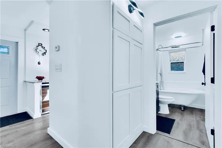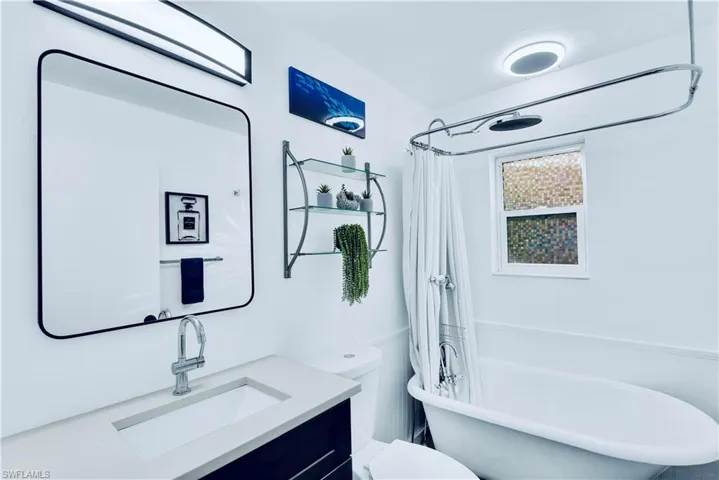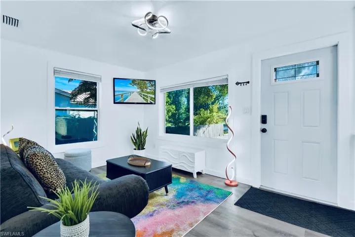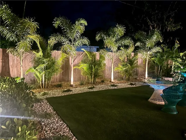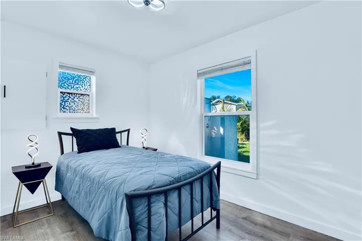 Charming Home Near Downtown Fort Myers River District – Dead-End Street Oasis Ideally located close to Downtown Fort Myers River District, this beautifully maintained home is nestled away on a quiet dead-end street, FRESHLY paved driveway offering privacy and serenity. Enjoy tranquil outdoor living highlighted by a serene koi pond, elegant stone walkways, and a mature oak tree surrounded by professionally illuminated landscaping. This residence features a commercial-grade metal roof, brand-new 2025 HVAC system, 2021 water heater, newer electric panel, newer windows and doors, and city water & sewer. Freshly painted and thoughtfully updated throughout. The kitchen showcases high-end granite countertops, shaker cabinets, attractive tiled backsplash, premium fixtures, and newer appliances. Interior highlights include enticing wood laminate flooring throughout, wainscoting accents, faux blinds, and modern finishes. The bathroom offers a desirable freestanding tub and new vanity. Additional conveniences include a laundry room under air with utility sink, storage cabinets, folding vanity, and high-speed internet availability. Outdoor features include a tiled front entrance, 6-ft fenced yard, privately enclosed outdoor shower, additional exterior storage, and new outdoor receptacles. A rare opportunity to own a peaceful retreat just minutes from dining, entertainment, and the waterfront—schedule your showing today!