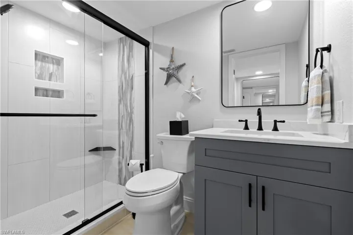 Practical amenities include an interior laundry room with washer and dryer, instant hot water at all faucets and shower heads, and a generously sized lanai protected by new electric hurricane shades. No detail was overlooked in this complete transformation—fresh paint, new interior doors and hardware, modern ceiling fans, stylish light fixtures, updated bathroom vanities, and a new hot water heater.