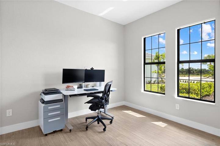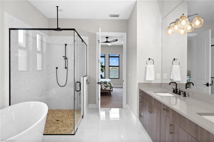 Lake Babcock Estates! Nestled within a quiet enclave, this house offers breathtaking panoramic lake views. Over .25 of an acre on a cul-de-sac. Relax in complete privacy on the expansive lanai, basking in the warm afternoon sun as you enjoy the heated pebble tec finished pool, complete with a cascading waterfall and spa. Entertain effortlessly using the convenient summer kitchen, featuring a bar, fridge, and gas grill. This Custom-Designed Stock Builders, Wisteria model, boasts 4 bedrooms, 3 baths, and a bonus room for an extra office. Notable upgrades include solar panels for sustainable electrical power, a premium metal roof with 18” standing seam, Tesla charging station in an insulated 3-car garage equipped with 2 a/c mini-splits; contemporary Chef’s gas kitchen, Jenn-Air beverage refrigerator, quartz counters; impact glass, whole-house water softener, reverse osmosis. Babcock Ranch provides a dynamic lifestyle, featuring 2 clubhouses, a wide array of recreational amenities, educational facilities ranging from kindergarten to high school, and a downtown area filled with restaurants and shopping. Grandfathered permit for dock.
