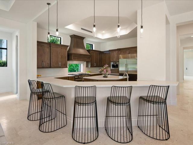 Magnificent estate home built in 2021 on a 0.63 acre lot within the exclusive Escada Estates at Tiburón, Ritz Carlton Golf Resort with an immediate full golf membership available. Bathed in natural sunlight, this home has nearly 7000 SF of interior & 2223 SF of exterior living with 4 bedrooms, 4.5 baths, study, full-size bar, upstairs living area & 4 garage spaces with room for lifts. Home offers a tremendous volume throughout including 29’ tall soaring ceilings in the foyer/parlor. Zero-corner sliding doors fully pocket into the family room walls and lead to your private oasis with a resort style salt-water pool/spa, an expansive lanai & a full-size outdoor kitchen with a pizza oven. Chef’s kitchen features custom cabinetry, 48” Wolf gas range, Sub-Zero refrigerator & built-in coffee maker. A stunning circular staircase leads to upper-level living, 2 guest suites & an expansive lanai with sunset views over the Gold Course’s 15th green. The newest home within Escada with all the modern amenities such as impact windows/doors, custom closets, 4-zones of SONOS in-ceiling speakers, Lutron home control system w/ multi-zone solar shades & 4-zones of HVAC. Tiburon membership is optional.