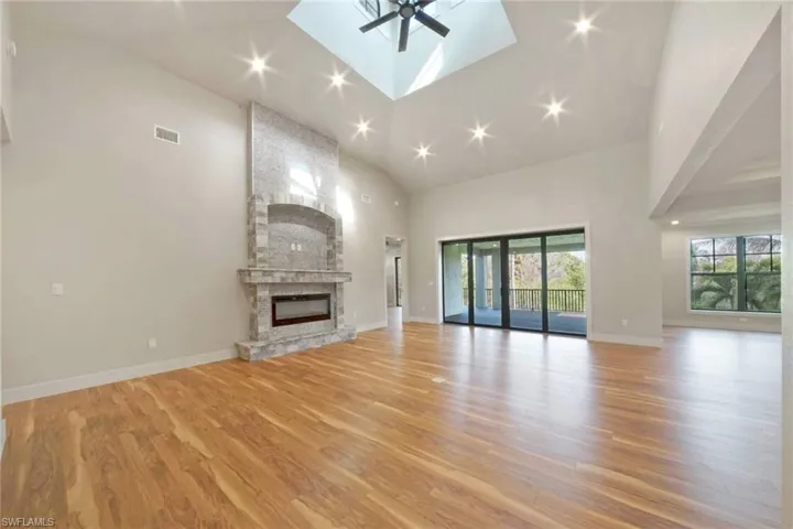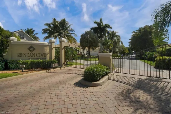GULF ACCESS Custom home in Brendan Cove, a charming, gated community situated along the Imperial River. Be the first to occupy this beautiful home in a truly unique and extraordinary location. This 3 bedroom, 3 bath elevated home overlooks a peaceful nature preserve and also includes a deeded boat slip with electric lift in the Brendan Cove private marina providing direct access via the Imperial River to great back-water fishing, boating, and the Gulf of Mexico. The home features an incredible great room floor plan that is bright, spacious with perfect flow to kitchen, dining and outdoor terrace. The kitchen was designed with an amazing island, beautiful custom cabinetry, granite countertops, tile backsplash, and stainless-steel appliances. Sliding glass doors open to an enormous, covered terrace overlooking the preserve and large backyard with ample room for swimming pool. Ground level features garage space for two cars and more than 1100 square feet of enclosed storage/bonus space with slider glass doors leading to the backyard. This neighborhood has a homey feel and its beautiful riverfront location, close proximity to shopping, restaurants, beaches, and airport have made it one of the most desirable riverfront locations in the area.