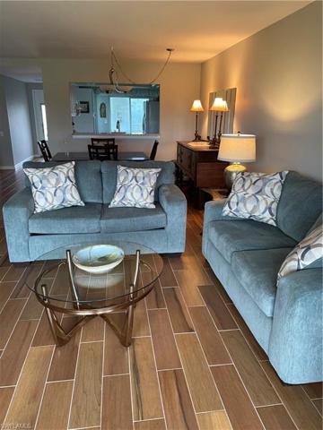 This beautiful 2 bed/ 2 bath Laurel model with 1339 sq. ft is TURNKEY and waiting for you to start living the Florida dream! This second floor condo features spectacular lake and golf course views from the expanded living area. The kitchen has been updated with white cabinetry, granite countertops and all new appliances. Open and bright with plank tile floors throughout. The primary bedroom has a private bath, spacious walk-in closet and more of that view! Newer furnishings throughout (and a few antiques!). NEW A/C, new washer & dryer, and a new roof too. Impact windows and shutters. SEVEN LAKES is an active 55 plus community featuring bundled golf and low fees. All kinds of fun here including: 18 hole golf course, tennis, pickleball, heated pools,gym, library, billards, woodworking shop, hobby rooms, craft & card rooms, bocce, shuffleboard, on site restaurant and more. This excellent location is just across the street from Bell Tower shopping & dining and minutes to the beaches. Your fees include just about everything: 24 hour guard gate, internet, cable, water, sewer, building insurance and bundled golf plus amenities! This is easy to see- put it on your list!