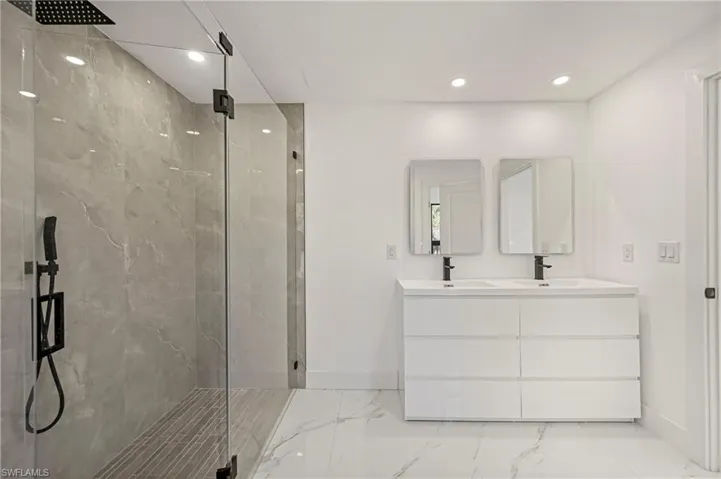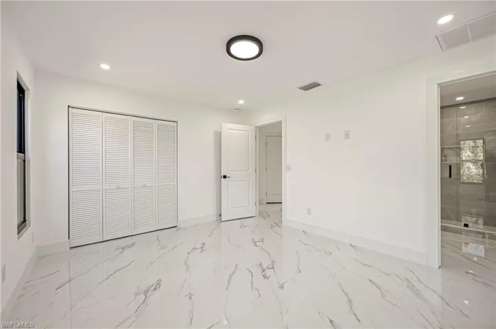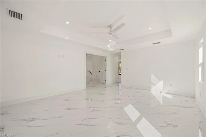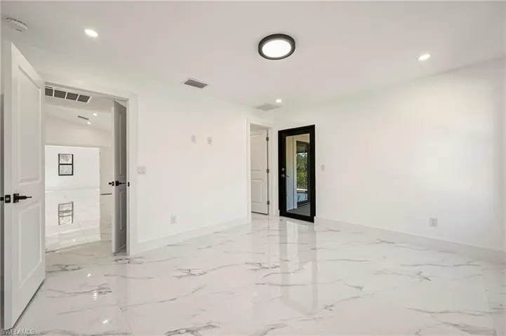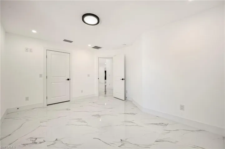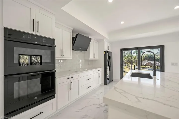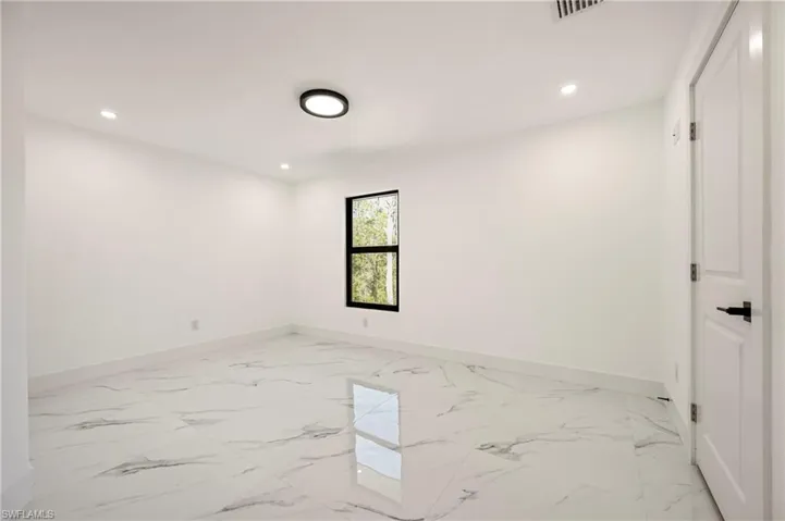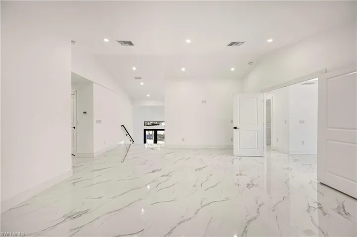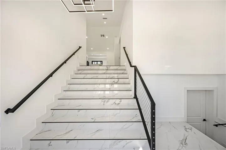 Discover your private retreat in the heart of Golden Gate Estates, featuring 2.14 acres of upland property within a sprawling 2.50-acre parcel — offering the perfect foundation to build, expand, and create your own tropical oasis. Here, serene privacy meets refined Florida living, with ample space to add a custom pool, guesthouse, workshop, or private mother-in-law suite. This new construction, never-lived-in two-story residence seamlessly blends modern luxury with the tranquility of expansive acreage. Boasting approximately 2,970 total square feet, the home showcases soaring volume and tray ceilings, elegant high-end finishes, impact-resistant windows and doors, tile flooring throughout, a new roof, new septic system, and a new hot water heater — delivering the peace of mind and energy efficiency today’s buyers expect from new construction. The open-concept design effortlessly connects the living, dining, and kitchen areas, creating an inviting space ideal for entertaining. At the heart of the home, the chef’s kitchen features a striking marble island with additional storage, custom white cabinetry, brand-new appliances, an electric cooktop, and generous prep space. Expansive sliding glass doors frame picturesque views of the lush grounds, flooding the interiors with natural light and enhancing the bright, airy ambiance. The primary suite serves as a private sanctuary, complete with balcony access overlooking the charming tiki bar, a spacious walk-in closet, and a beautifully appointed spa-inspired bath featuring dual vanities and an oversized walk-in shower with rainfall shower heads. Two additional bedrooms offer comfort, privacy, and ample closet space for family or guests. A wrap-around second-story balcony captures peaceful views of the surrounding landscape, while the expansive tiled lower level presents an exceptional opportunity — enclosing the first-floor space, including the garage area, could create approximately 3,000 additional square feet of living space. The fully finished lower-level garage already includes plumbing and tile work for a future bathroom, making it ideal for conversion into a private guest suite, home gym, or multigenerational living quarters. Outdoors, a concrete entertaining area and traditional tiki hut set the scene for unforgettable gatherings, perfectly embracing the relaxed elegance of Southwest Florida living — all within a brand-new estate designed for comfort, flexibility, and long-term value.
