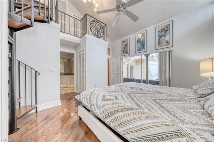 Creative living space meets excellent location in Naples. This private oasis features 3 bedrooms, a den, a flex room, 3 lofts and 3 full baths and TONS of closet space. At OVER 3,000 square feet this sprawling home also includes a private POOL and cabana, two private lanais, one with a refreshing fountain and low-maintenance pond, & large roof top deck. Hardwood floors throughout the first floor. THREE A/C’s (NEWER), granite counter tops in kitchen and baths. TWO car ATTACHED garage. Steps to community pool and tennis courts. A few minute drive to Mercato shopping/restaurants and the FAMOUS Delnor Wiggins Beach access. 1 mile to I 75 and short drives to local hot spots like Waterside Plaza, Whole Foods, Trader Joe’s & Regal Hollywood 20 Imax. LOW maintenance as this lovely home lives like a villa but is legally a condo.