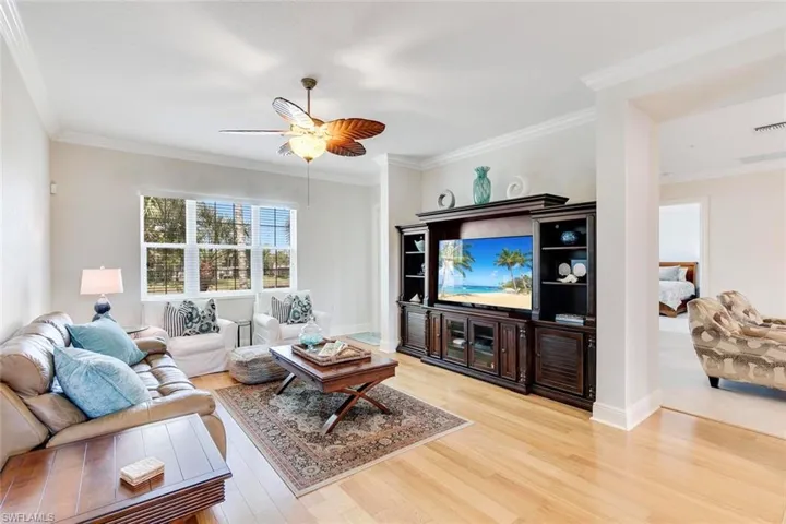 Lovely lake views and the peace and quiet of this Fiddler’s Creek neighborhood welcome you home to your place in paradise. CDD is PAID OFF. Spacious 2nd floor coach home features a beautifully crafted solid oak stairway with an elevator-ready option, high quality Italian tile floors, upgraded granite in both kitchen and baths, 1 1/2 year ‘new’ roofs, new impact glass windows throughout plus impact rated front balcony doors, stainless steel appliances, pretty light fixtures, comfortable guest suites, high ceilings and crown moldings. The large screened lanai has electric hurricane shutters that offer security both in a storm and when you are away, plus the convenience of leaving your outdoor furniture in place year round. The award winning Fiddler’s Creek community offers residents a fabulous clubhouse complex with full attended fitness center, spa services, dining, pool side service, tennis, pickleball, resort style pools, nature walks, preserves, and impeccably landscaped grounds throughout. Optional golf, beach and boating memberships are available. Offered completely turnkey furnished, all you need is your clothes and toothbrush and you can be living the SW Florida lifestyle you have dreamed about.