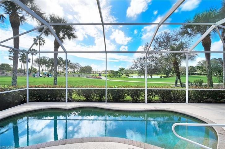 BEING OFFERED IS THIS IMMACULATE SINGLE-FAMILY IN ONE OF NORTH NAPLES FINEST COUNTRY CLUBS, SOUTHERN GOLF COURSE VIEWS, TURNKEY, FULL HURRICANE PROTECTION, INCLUDING REMOTE ELECTRIC SHUTTERS ACROSS THE ENTIRE LANAI, 15FT. OF GLASS SLIDERS IN GREAT ROOM, TALL CEILINGS THRU-OUT,