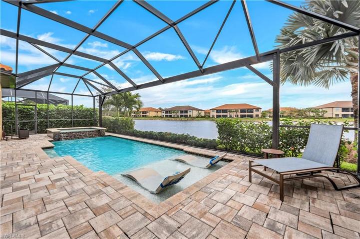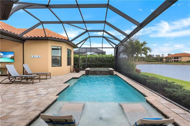 Experience the epitome of resort style living year round nestled within Esplanade Golf & CC, 9484 Livorno Ct offers an unparalleled lifestyle & meticulously maintained with fabulous Southern lake views & GOLF MEMBERSHIP. Featuring the “Pallazio” model floor plan with open living including: 3+Den, 3BA, 2-car tandem garage w/epoxy flooring, impact windows & doors, custom upgraded woodwork & finishes throughout, built-in speakers & more! Extended gourmet kitchen is perfect for entertaining w/large Quartz island, organized pantry, upgraded Monogram appliances, natural gas stove & wine fridge. Retreat to the master suite highlighting the large custom walk-in closet & walk in shower. Paradise in your own backyard! The panoramic screened lanai overlooking the lush landscape & lake views features a custom outdoor kitchen, ice machine, gas fireplace, hurricane screens & heated pool & spa. Esplanade is known for its rich lifestyle & amenities including: pristine 18-hole golf course, state of the art clubhouse, resort pool, cabanas, wine tasting room, culinary center, Bahama Bar, pickle ball, Càfe, walking trails, 6 tennis courts, dog park, fitness center & more! Ready for new owners!