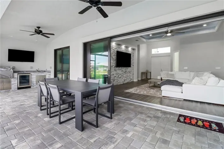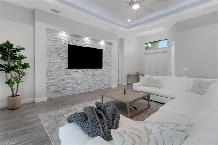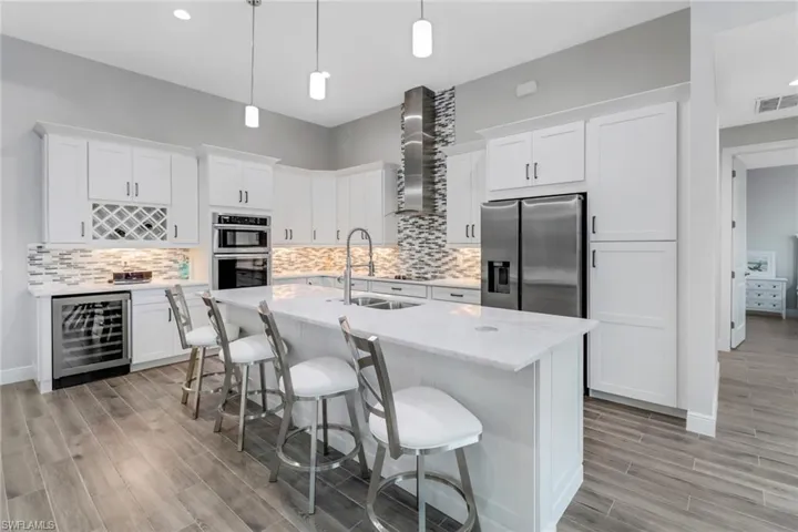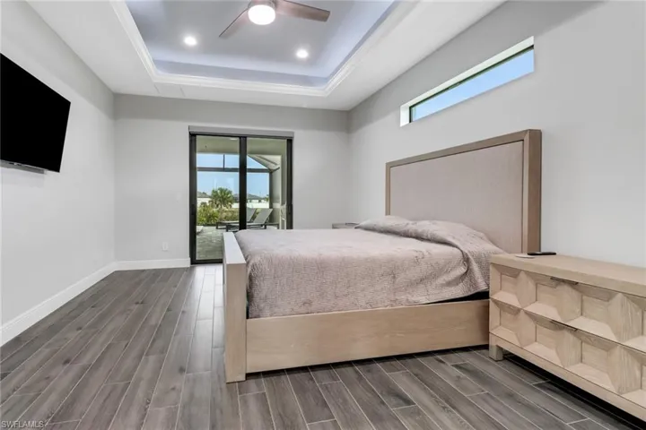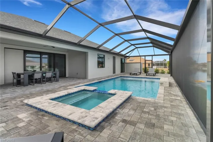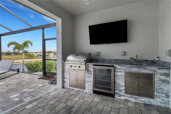 BETTER THAN NEW! Start with a brand new custom Gulf Access pool home, and then add to the best parts. High end reverse osmosis water system, a protective canopy cover to the 14k lb boat lift, epoxy garage floor, and to top it off upgrade the landscaping way beyond the normal builder’s package. This is a 4 bed, 3 bath, 3 car garage custom gulf access pool home in one of the prettiest parts of Cape Coral. The NW Cape is known for it’s newer custom water front homes and great neighborhoods. This home features all impact glass, including the 8 ft sliding glass doors to the large under truss lanai. The paver pool deck is the perfect place to entertain family and friends and enjoy the weather. The heated pool has a sun shelf and built in spa overlook the wide gulf access canal, lanai area has plenty of space for sunning and entertaining to the sound of your personal waterfall. Custom summer kitchen w/ stainless grill/fridge/sink combo. Inside the large custom kitchen features 42″ uppers, wine storage, wine fridge, level 3 granite w/ undermount sink, and custom quiet close shaker doors and cabinets. The tile backsplash unites the interior colors. Plank tile floors throughout the home. Great room features natural stone accent wall behind the TV. A guest bath is also the pool bath. Owner’s suite has walk in closets, back lit trey ceiling w/ crown molding, dual sinks, walk in shower.