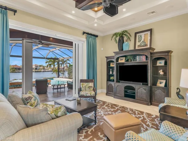 Don’t miss the opportunity to make this luxurious custom home yours! Sold turnkey and beautifully furnished, this home is perfect for enjoying the tropical island life and great for entertaining. With massive amount of outdoor lanai space complete with a custom oversized (18x38ft.) saltwater pool and infinity edge spa (6x12ft), as well as overlooking the big bay water views, what’s not to love? The outdoor space has a new picture-window screen pool cage (2020) for unobstructed Southwestern views of the sunsets. Lush tropical landscaping provides privacy along with a fenced-in backyard and the dock has a 14,000lb boat lift (2017). Built in 2013, this energy efficient home is Florida Green Home Certified. With only 1 owner, this 3 bed+den and 3 bath home has been meticulously maintained. The open floor plan boasts 2,358 square feet under air with a commercial style chef’s kitchen, wood detail coffered ceilings, walk-in closets, and water views throughout the living room, kitchen, and master bedroom. In addition, there is a 500-gallon underground propane tank used for the gas stove, grill, dryer and 2 instant-hot water heaters. A new pool heater was installed in 2022. There is hurricane protection throughout the home as well as hidden electric stutters. Come make your dream a reality!