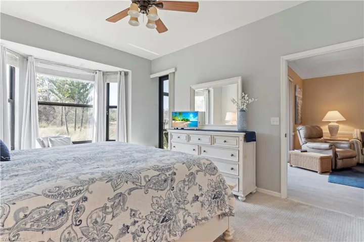 Located on a quiet, cul-de-sac street, this first story, two bedroom plus den, two bathroom condo offers wonderful golf course and lake views of the 18th hole. You will be delighted with plenty of outdoor space as this condo offers both front and back lanais. Step inside and you will notice updated luxury vinyl flooring in the living area and den, as well as a split floor plan for privacy. The primary suite has gorgeous bay windows in the primary bedroom and an updated primary bathroom. The condo features impact resistant windows and sliders throughout. This property also comes with a one car garage. The building has a new roof, screens, railings and was recently painted. This condo is being offered move-in ready and completely turnkey! This property comes with a full golf membership to Naples Heritage, a premier bundled golf community with an 18-hole, Gordon Lewis designed golf course offering golfers leagues, clinics, tournaments and more! Beyond golf, Naples Heritage also has four pickleball courts and six tennis courts with regularly scheduled leagues and clinics, bocce, a fitness center with a wide variety of classes, poolside dining at the Palm Terrace overlooking the resort style pool, additional dining at the main clubhouse and endless social events throughout season. The community is conveniently located just 15 minutes from downtown Naples, near i-75 for quick access to head to the airport, and just off of Collier to head south towards Marco Island. What are you waiting for? Come get your slice of paradise today!