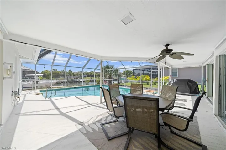Welcome to this beautifully modernized Gulf-access pool home in SE Cape Coral. This inviting residence features 3 bedrooms and 3 full bathrooms, including a convenient pool bath, and is being offered turnkey for an easy move-in experience. Recent updates include a brand-new hot water heater (2026), a fully renovated pool bath with new plumbing, and new tile flooring throughout the home. The desirable south rear exposure provides all-day sunshine over the pool, which is equipped with a solar heater for year-round enjoyment.