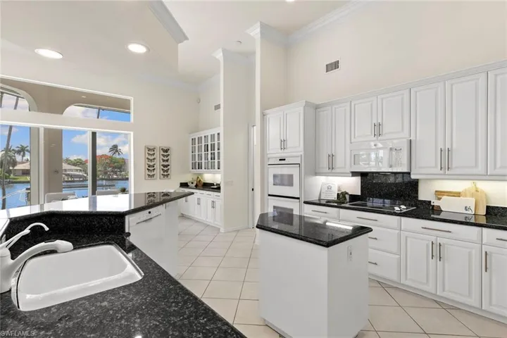 Outstanding wide water views from the panoramic screened-in lanai with southeastern exposure for beautiful sunrises. Light and bright with 12-foot ceilings, spacious with an open floor plan including three bedrooms plus a den. Kitchen has granite countertops, a breakfast bar and plenty of cabinet storage. Main bedroom offers French doors out to the lanai, a large walk-in closet, a main bath with a walk-in shower and a jetted tub. Lovely outdoor living space with a grill and new screen cage. Enjoy fishing from the expansive PVC dock, which includes a built-in dock box, bench, fish table, snook light and flagpole. Other features include a new roof (2024), boat cradle and pool pump. Home is centrally located, close to the beach, restaurants and shopping.