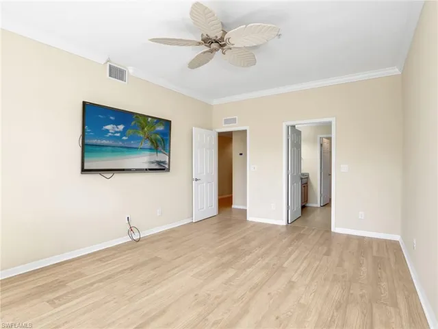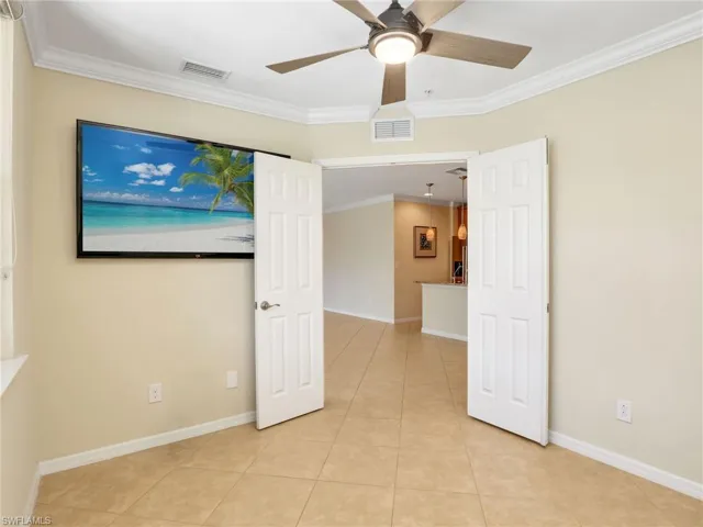 PROPERTY HIGHLIGHTS: Spacious split-bedroom floor plan with two full baths and a dedicated den featuring a fountain view. NO CARPET! NEW vinyl wood plank flooring in the bedrooms, tile flooring throughout the remaining living areas, Other features include fresh paint, crown molding, granite counters in kitchen & bathrooms and four wall-mounted TVs included.