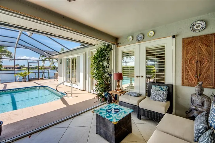 MILLION DOLLAR VIEWS ON LARGE QUICK GULF ACCESS LAKE. This stunning Southern exposure Cape Coral pool home offers exactly that, a prime waterfront location in a peaceful and quiet neighborhood, where pride of ownership is evident at every turn. With over 2,000 sqft of living space, this meticulously maintained property features 3 bedrooms, 2 bathrooms, and a 2-car garage, making it ideal for families or anyone dreaming of waterfront living. Recent upgrades including new AC (2020), and a new roof (2022) ensure peace of mind, while hurricane shutters throughout offer added protection.