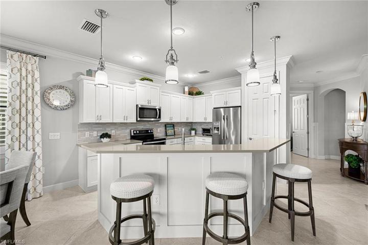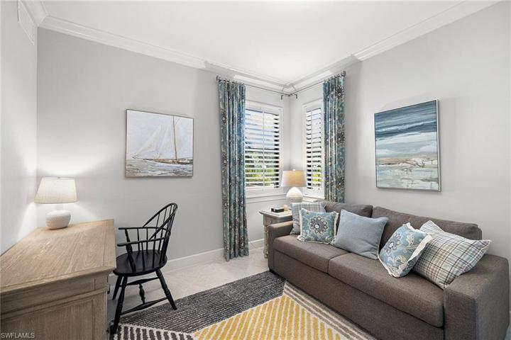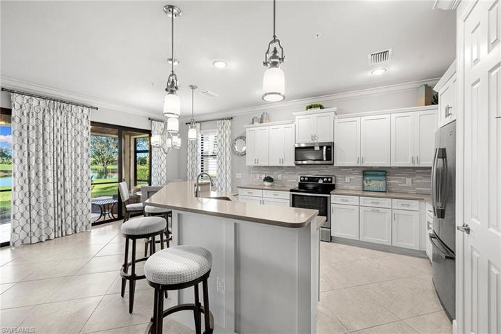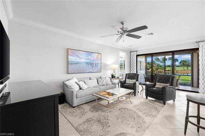 This gorgeously appointed coach home in The TwinEagles Club has full golf membership deeded to the property, offering you everything the club has to offer. The beauty of purchasing a full golf property in TwinEagles means no waiting list and golf privileges immediately upon closing. Features two bedrooms plus den that can serve as guest quarters, and two full baths. A light, bright coastal palette throughout the property makes you happy you chose the Florida lifestyle. The screened lanai offers beautiful daytime views and breathtaking sunsets. Along with the protection of impact windows and doors, the lanai is also outfitted with automatic storm screens. The club has recently undergone an extensive renovation to the clubhouse and many amenities. Enjoy 36 holes of some of Southwest Florida’s best golf in one location. You will look forward to calling this ideally sized coach home your seasonal or year-round home.