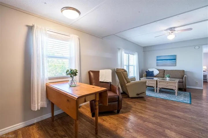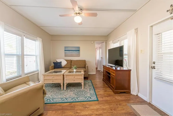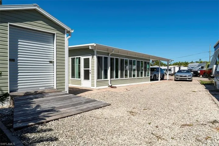 AFFORDABLE, Spacious 2 Bed 2 Bath Manufactured home WELL MAINTAINED, LAND-OWNERSHIP & PRIME LOCATION in Bonita Springs! Rare opportunity to own a piece of PARADISE just 2 miles to the BEACH located in the Charming Bonita Park Trailer Park! Residents enjoy the proximity to Dog Beach, Lovers Key State Park, Fort Myers Beach, and Barefoot Beach. The park is conveniently situated just 4 miles from Interstate 75. Split floor plan w/washer & dryer in residence, being sold furnished with coastal design & UPGRADES! NEW Windows, Electrical Panel, Laminate Wood Flooring in the Main Living & Kitchen, Stove, Water Heater, Dryer, Washer, Front Door, Flooring in Main Bath, Blinds, a beautiful Paver driveway w/extra parking & w/small patio ready for your grill! Newer Large Outdoor Living Lanai space fully enclosed w/Windows (not under AC), a great place to relax & entertain your friends & family! Extra BONUS this property comes with a Storage Shed with lots of room to store golf cart, bikes, kayaks, beach chairs, golf clubs, boating & fishing gear, tools & more! Bonita Beach Trailer Park is a small 55 + Co-op celebrating 30 years! Low monthly fee includes community lawn care, water, sewer, centralized trash pickup, and amenities which include: clubhouse, pool, close to public boat ramp, shuffleboard, pickleball, a common laundry room. Very active activities calendar that includes mens & ladies horseshoes, corn hole, bingo, Yoga, Mahjong, Aquasize, Line Dancing, Movie Night & Social Events! It’s a great time to BUY! Spend your winters in this charming BBTP Paradise or live full-time & enjoy all that SW Florida has to offer!