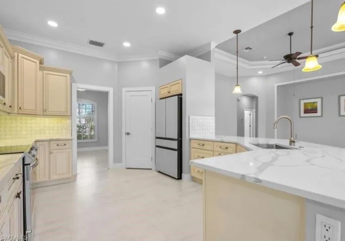 Major updates include a new roof (06/2023), resurfaced pool (10/2023), new A/C system (2022), and appliances all less than 3 years old—offering comfort and peace of mind.