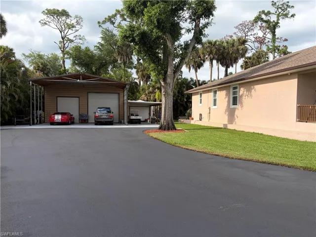 This is the Engineer’s Estate. The 2020 construction by the owner was meticulously planned. This land size DOMINATES much smaller neighbors. A LUXURY HOUSE and GARAGE …AND a BONUS STRUCTURE! Don’t miss this unique opportunity to own your own Compound right in the Heart of North Fort Myers! 0.9 of an ACRE means you can barely see the 30′ X 33′ Pole Barn in back. Yes, there is hard work going on inside it with the 10,000 Lb. Lift, and the 80 Gal. Air Compressor (A mechanic’s dream); but don’t worry, it’s insulated with COLD A/C! So, what will you do with the pole barn? Keep the work going? Turn it into an EXTRA SLEEPING AREA? …A STUDIO? …STORAGE UNIT? The possibilities are endless. Conveniently located between New 41 and Old 41. The new sealed driveway is just for you. Border trees are included, as well as the 5 fruit trees.