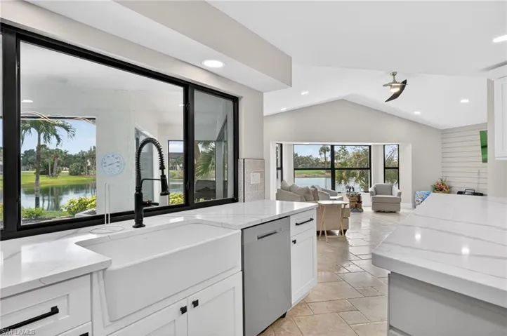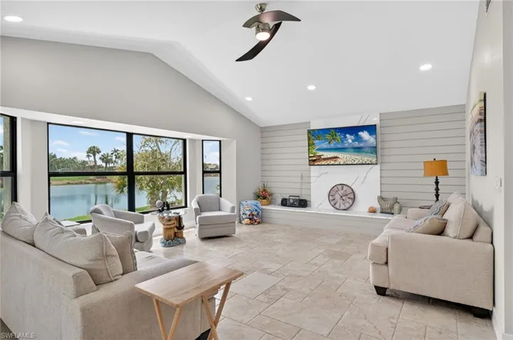 Completely and professionally remodeled with high-end appointments. Large spacious rooms, 12-foot ceilings, with a beautiful travertine stone floor throughout the kitchen and living areas. All new hurricane rated PGT impact windows and doors, quartz countertops, stainless-steel appliances, new A/C system, and a fantastic built-in, electric fireplace. All completed within the last three years. Fresh sod and landscaping, with absolutely beautiful lake and golf course views. Rear lanai has rough in for outdoor kitchen and there is room for a pool. Kelly Greens GC is that perfect location with beaches, shops, restaurants, and grocery stores all within biking distance. The world-famous islands of Sanibel/Captiva and Ft Myers Beach are just minutes away. The centerpiece of Kelly Greens is a Par 72 championship golf course designed by architect Gordon Lewis. The Bermuda grass golf course offers a challenge to golfers at all skill levels. Amenities also include a beautiful new Clubhouse with full service restaurant, weight and exercise room, Golf Pro Shop, Tennis courts, and swimming pool.