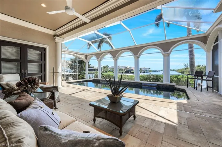 FOR THOSE LOOKING FOR A HOME THAT HAS THE MOST PREMIUM BOATING ACCESS IN SW FLORIDA WITH DEEP ENOUGH WATER AND A DOCK LONG ENOUGH TO ACCOMMODATE YOUR LUXURY CRUISERS, LOOK NO FURTHER! Located inside the gates of the prestigious Hermitage community, this property is truly a Boater’s Dream. 150+ Feet of DEEP, DIRECT ACCESS WATER FRONTAGE that will ACCOMODATE YACHTS up to 85 FEET IN LENGTH in addition to having two Wrap-around Composite Docks with 20,000 Lb. & 10,000 Lb. Boat Lifts and a Jet Ski Lift! NO MORE HASSLE DEALING WITH THE SHORTAGE OF LONG DOCK/DEEP WATER SLIPS! DON’T HAVE A BOAT YET BUT WANT THE AMAZING VIEW? RENT THE LONG DOCK TO A FELLOW YACHT OWNER STRUGGLING TO FIND A CENTRALLY LOCATED DOCKAGE FOR APPROXIMATELY $30,000-$50,000 ANNUALLY! Did we mention this amazing dock comes with a home!?! That’s right! OVERSIZED HOME SITE, SOUTHERN REAR EXPOSURE, Breathtaking Water Views overlooking Intersecting Canals and a Protected Nature Preserve, If you love seeing Boat Traffic and Nature, this is the spot! You’ll see Dolphins, Manatee, Tarpon, Osprey, Bald Eagles, and various species of fish and birds. This stunning 3-Bedroom + Den, Gulf Access Pool Home exudes luxury at every turn, with tall ceilings and solid BLACK MAHOGANY DOORS welcoming you into a haven of comfort and style. Offered TURNKEY FURNISHED and has been thoughtfully upgraded for your convenience and enjoyment. Recent improvements include a new Naples-style Pool Cage with decorative columns and No-seeum Screens, DAM Flood Walls that essentially raise the height of the home by 2 feet in case of high waters, and a new concrete tile roof for added durability and curb appeal. Inside, you’ll find modern amenities such as new plumbing with polyethylene crosslinked pipe materials, a new electrical panel, ceramic wood-style floors throughout and STARLINK equipment with internet speeds in 346 – 650 mbps range. The HOA has also made significant enhancements to the community, including new streets, mailboxes, and sidewalks, with all assessments already paid in full by the current owner. Additional upgrades completed in recent years include a new HVAC system, deck and frame replacement for the dock with composite materials and 30/50 amp power supply, garage door replacement, and pool resurfacing with new coping, waterline tile, pavers, and lighting. Looking to expand? Explore the possibilities with renderings for a 1,000 square foot one-story addition featuring an outdoor kitchen, hot tub, and safe room (provided upon request). Or, create your own vision for use of the additional space on this beautiful property. Don’t miss this opportunity to own one of the most desirable locations in all of SW Florida. Schedule your private viewing today and get ready to start living the Gulf Coast lifestyle you’ve always dreamed of!