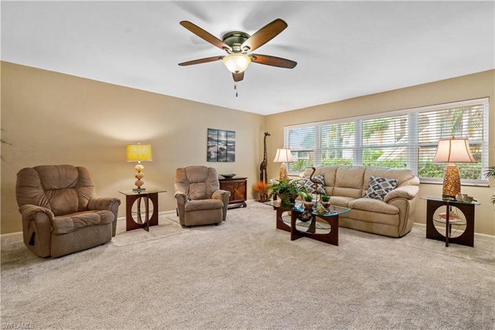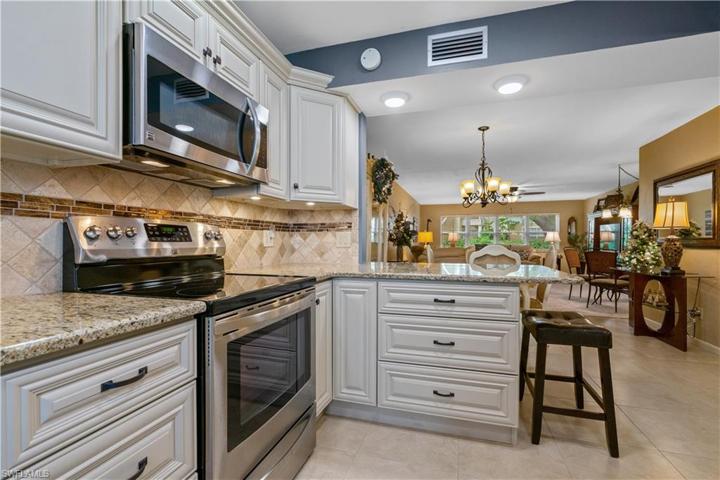 Welcome to Lake Lawn Condo. This beautiful first floor corner unit offers 2 bedroom, 2 bathroom, and over 1,200 square feet of living space with a bright and open floor plan. The recent remodel includes a beautifully done kitchen with granite countertops, new solid wood cabinets, and stainless steel appliances. Other upgrades include beautifully finished bathrooms with stunning tile work, a newer AC unit, new floors throughout, all new impact windows and doors, a large laundry room with tons of storage, and so much more. Being offered turnkey furnished, this condo is move in ready for season. Situated in a quiet and very well maintained 55+ community, the amenities here include a well kept clubhouse, community pool, shuffleboard, and covered parking all with very reasonable HOA dues. With convenient access to tons of local attractions such as the River District and Downtown Fort Myers, RSW Airport, tons of local shopping and dining options, and our beautiful beaches, you’ll love the lifestyle offered here.